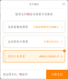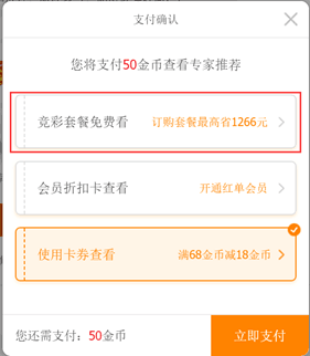 ③ 选择要订购的套餐,进行支付即可。订购时请务必确认套餐的适用彩种、可查看的推荐篇数和有效期。